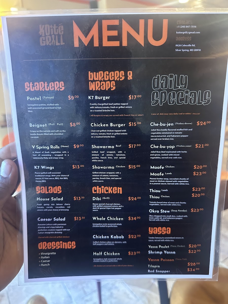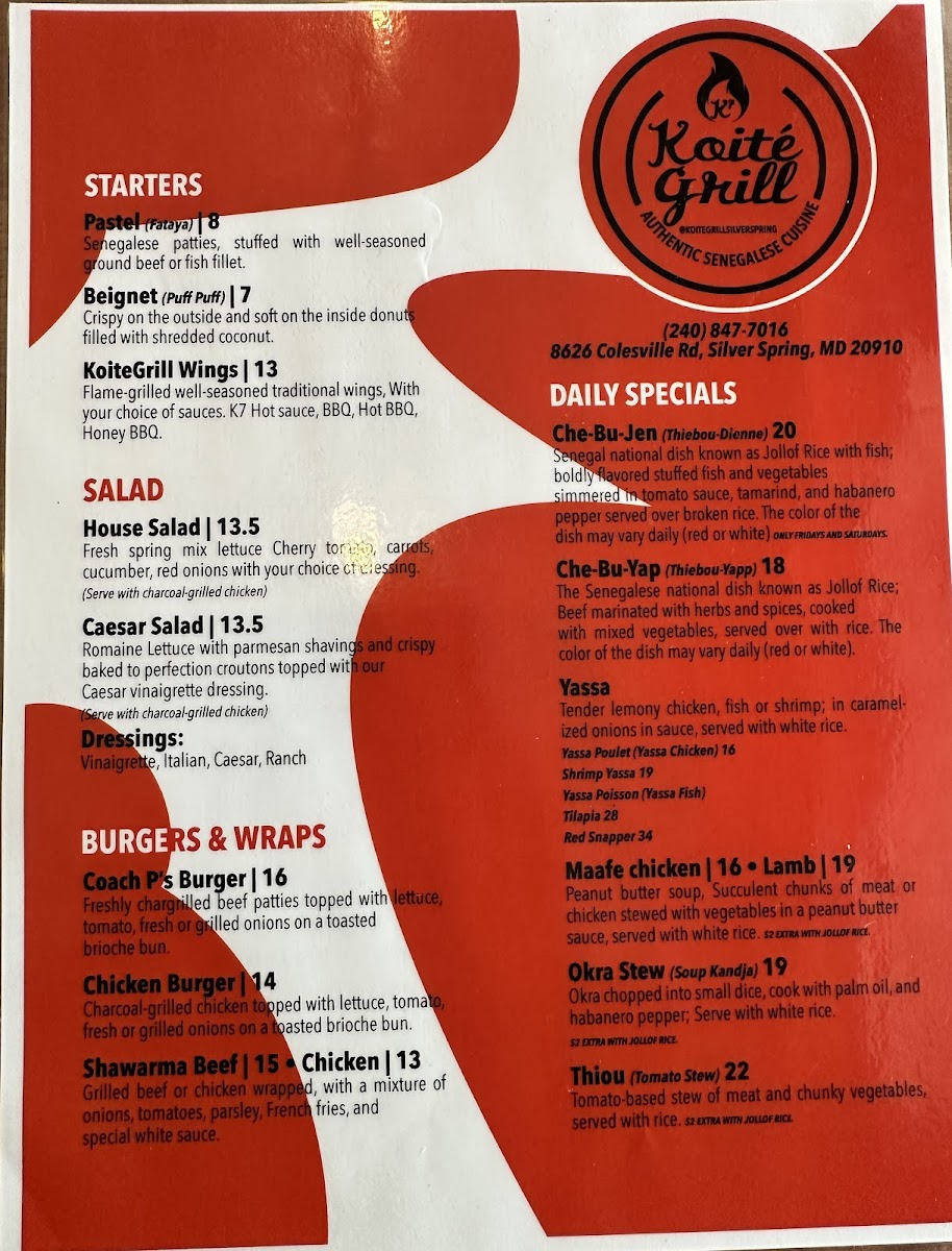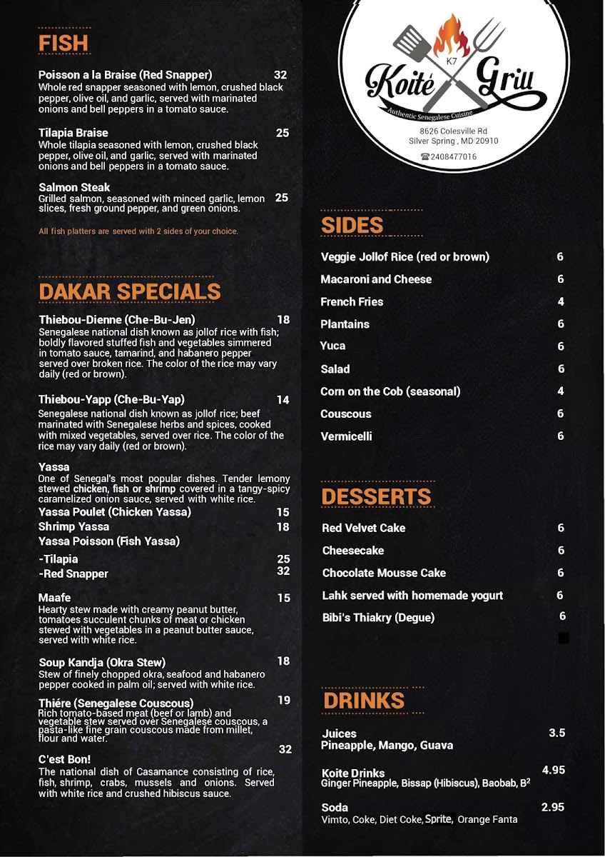 Koité Grill Menu