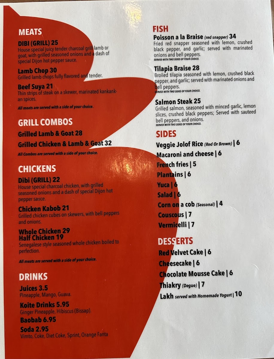 The menu’s balance of smoky grilled combos, vibrant rice dishes, and familiar sides such as fried plantains and vermicelli create a comforting and well-rounded experience. Whether you're stopping in for a casual meal or savoring a flavorful bite accompanied by a cool drink, Koité Grill’s menu reflects both tradition and welcoming simplicity in every dish.